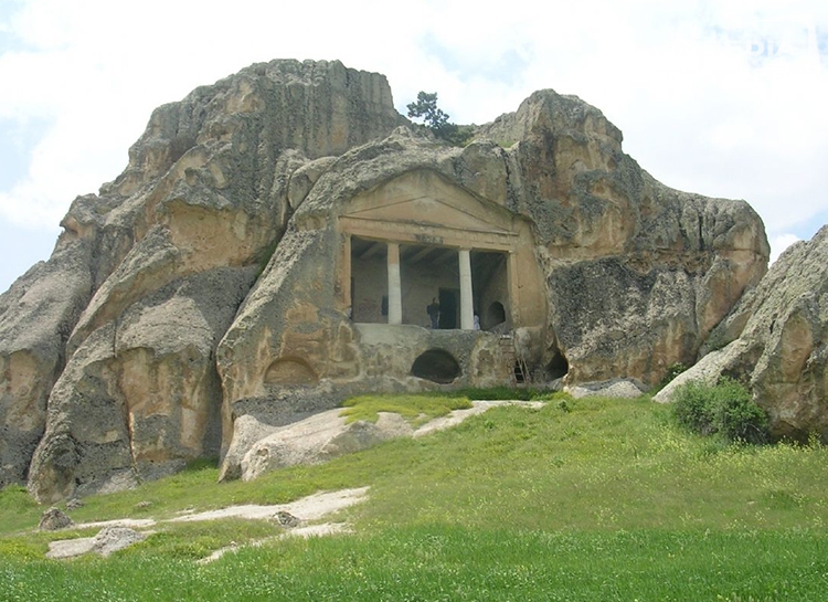 köyünün çevresinde bulunan kayalıklarda, Bizans döneminde yapılan kayaya oyma,